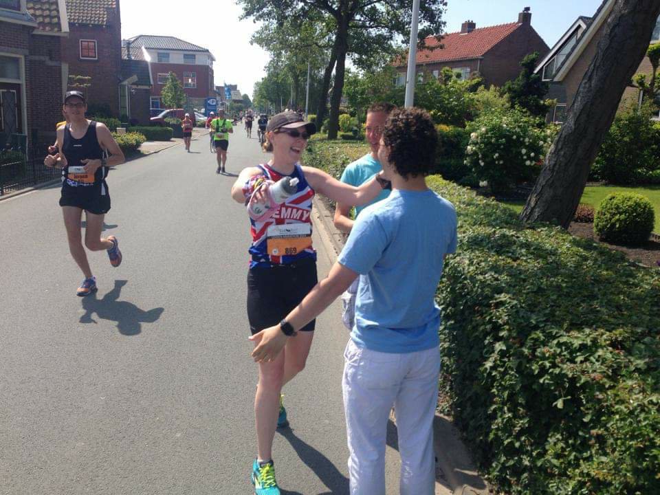 An example of this was during a project I was running in 2014. I got to know some of the developers and I mentioned over lunch that I was running the Leiden marathon that weekend. They said: “Oh! I live on the route”. I didn’t think anything of it until the day and at the 24th kilometer, I get a loud cheer and screaming my name. My colleagues had set up an impromptu “aid station” with drinks, snacks and support for me along the route. It was a wonderful surprise and memory of the day.