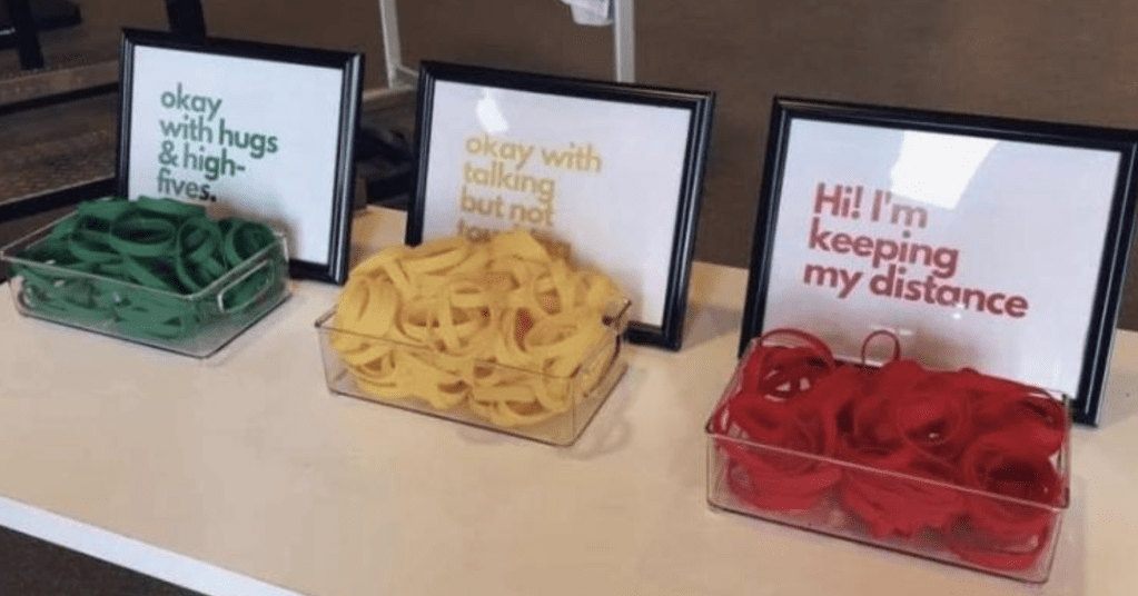 - Coloured lanyard protocols. See this post from LinkedIn.