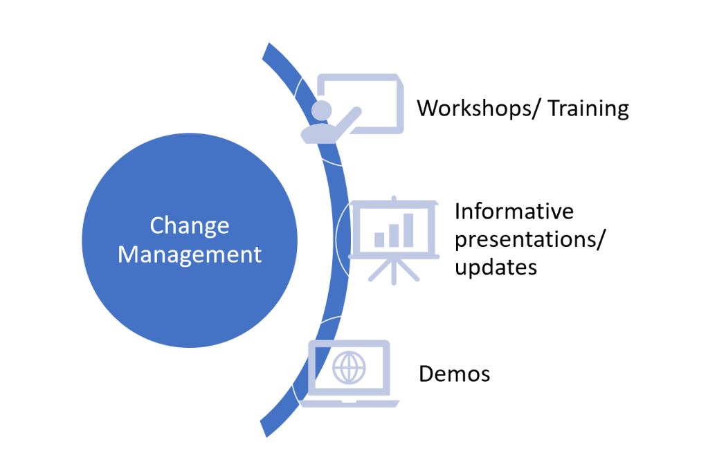 I am a strong believer in starting Change Management in the planning stage of the project. I have worked in several organisations where Change Management / user adoption starts initially in the requirements gathering stage to be able to show people what is going to be delivered, how it is going to look and training “change champions” who will take this knowledge back to the organisation.