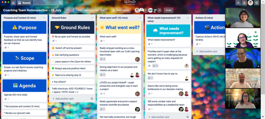 There are a few templates/tools available for running virtual retrospectives but you need to see what works best for you and your teams. I really like the clean look of the Trello boards but if your company is using specific tools, you can see if you can amend this for your use.